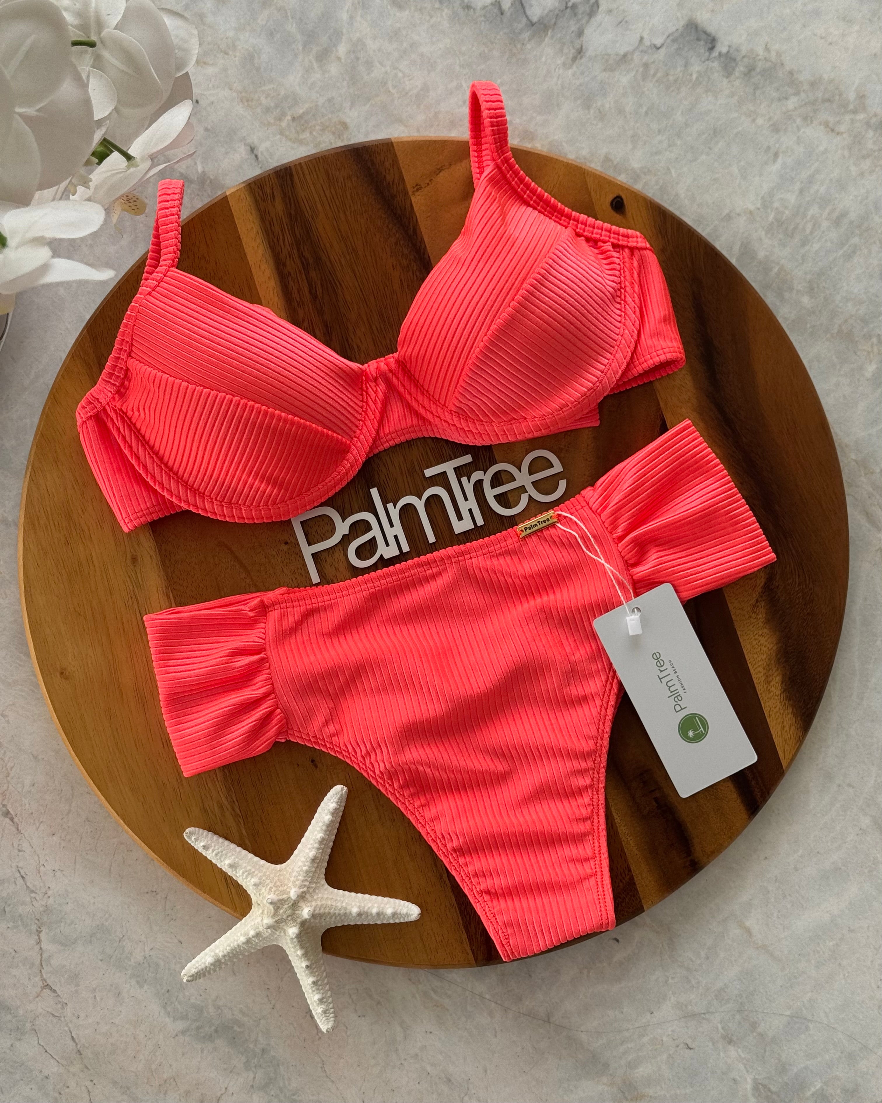 Santorini Shimmer Ribbed High Waisted Bra Bikini Set